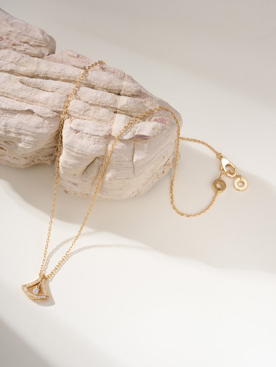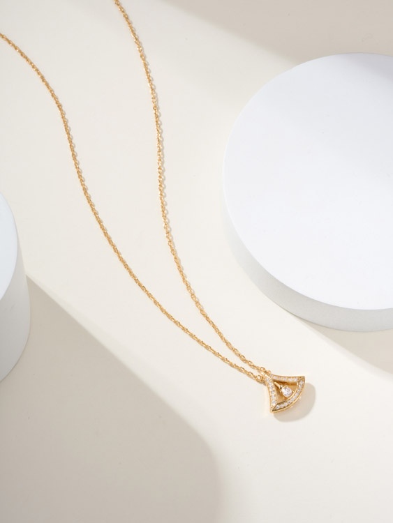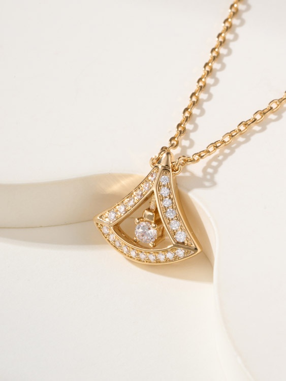 Bulgari platinum full diamond fan necklace-3609