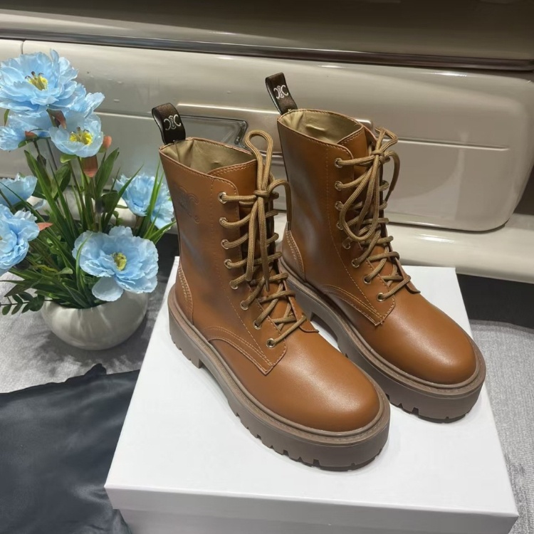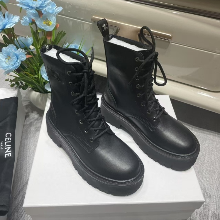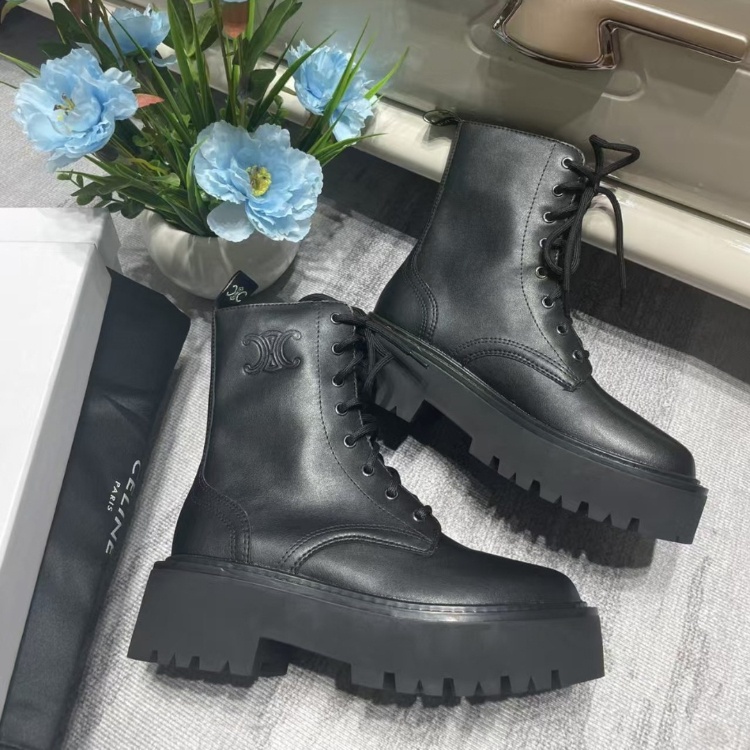 Celine new platform lace-up combat boots-5736