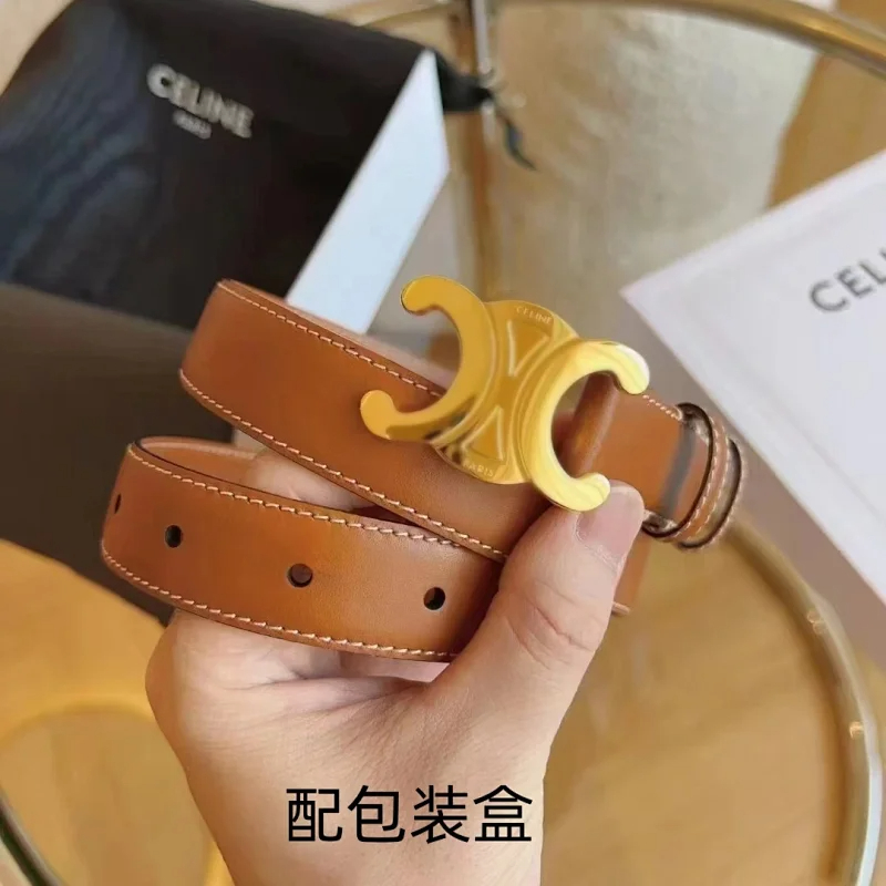 Celine with a gold buckle leather belt-4720