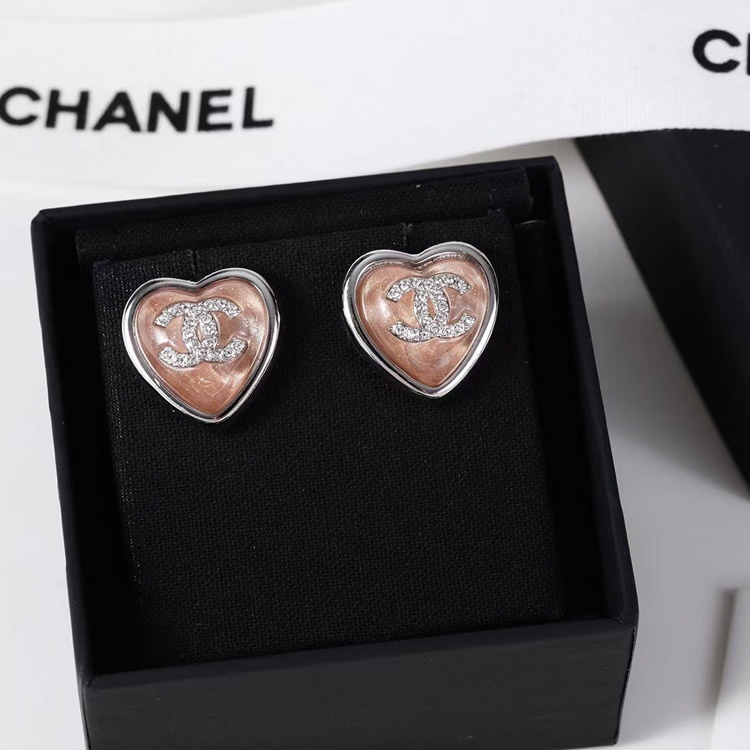 Chanel earrings rhinestone double c pink blue love earrings-3746