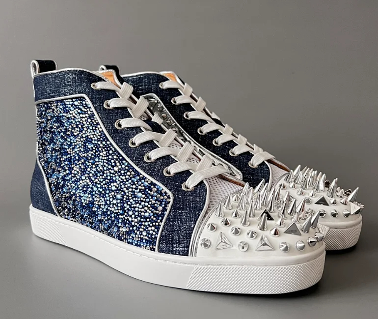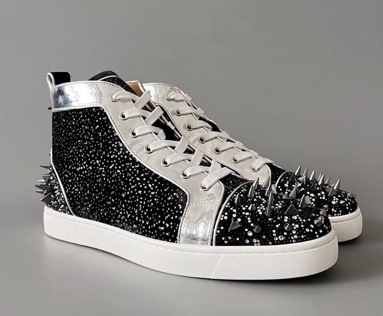 Home > Christian Louboutin CL calfskin round toe lace-up high-top sneakers-2963