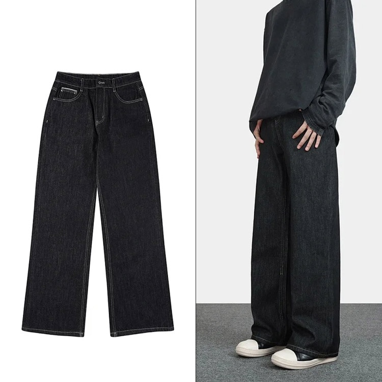 Cleanfit simple loose straight leg jeans-4915