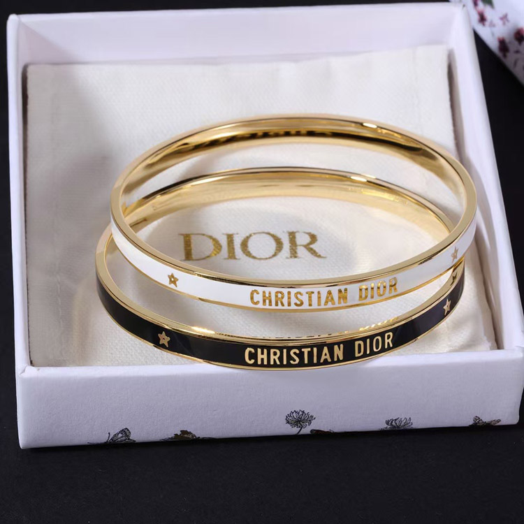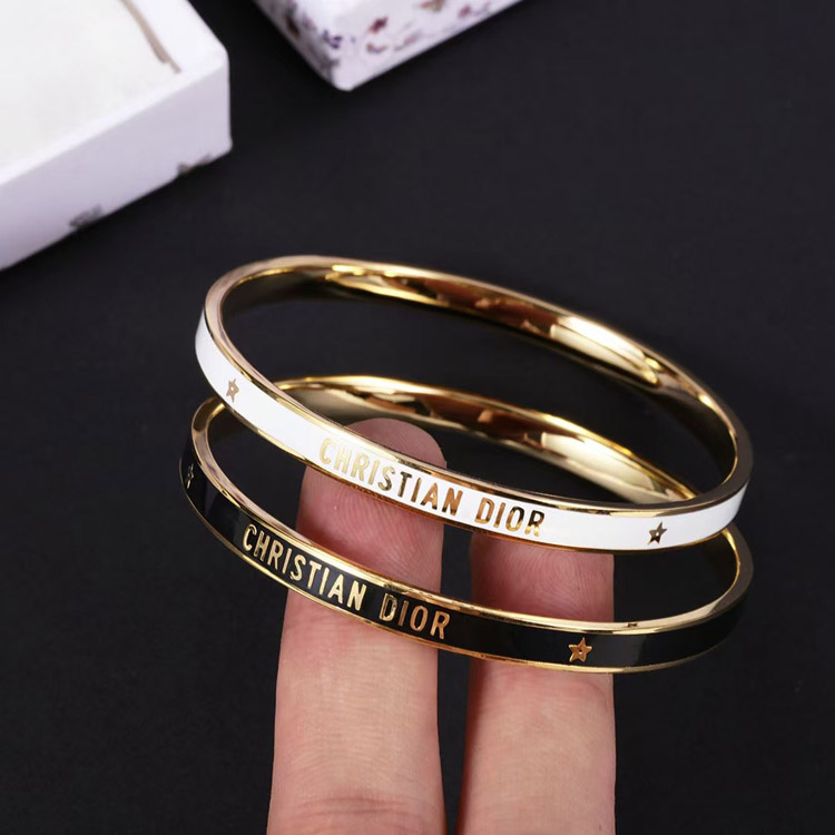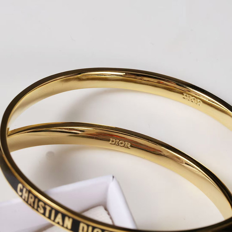 Dior bracelet gold finish metal black lacquer thin bracelet-3709