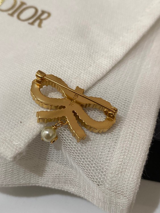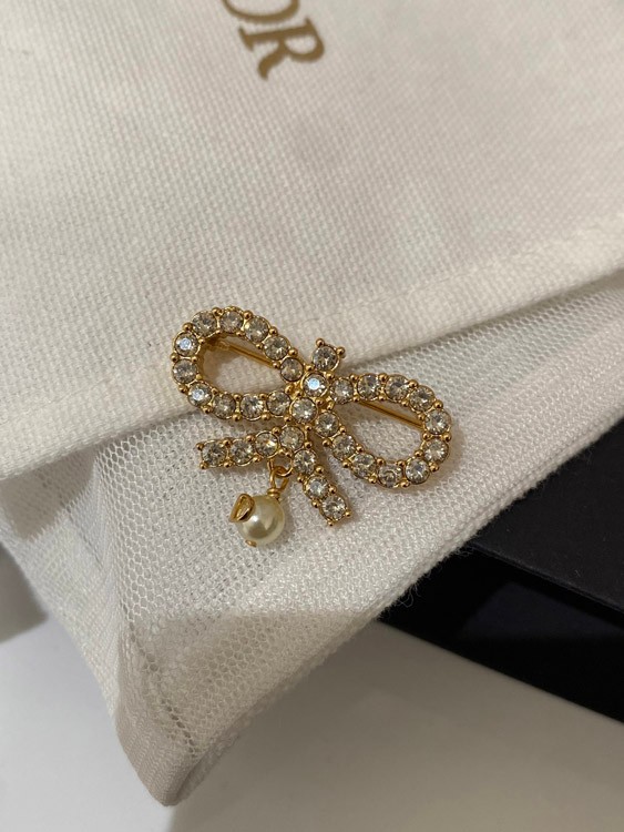Dior full diamond bow hanging bead brooch-3954