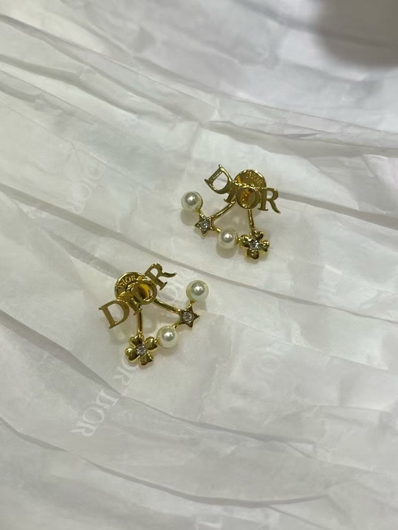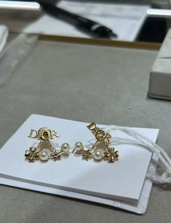 Dior gold star pearl double ball earrings-4017