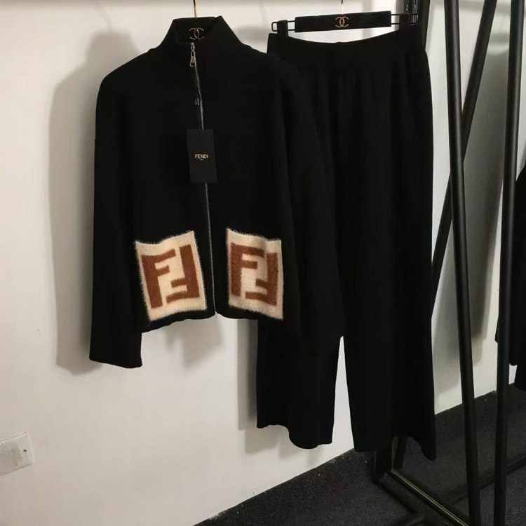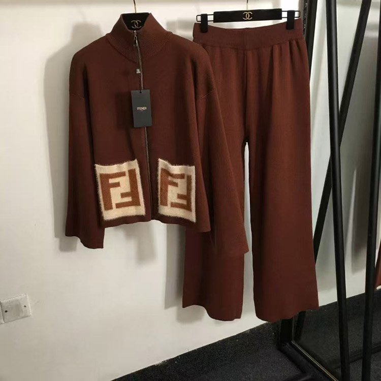 Fendi new knitted set with zipper and F-logo pockets-5376