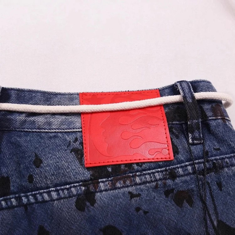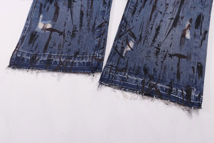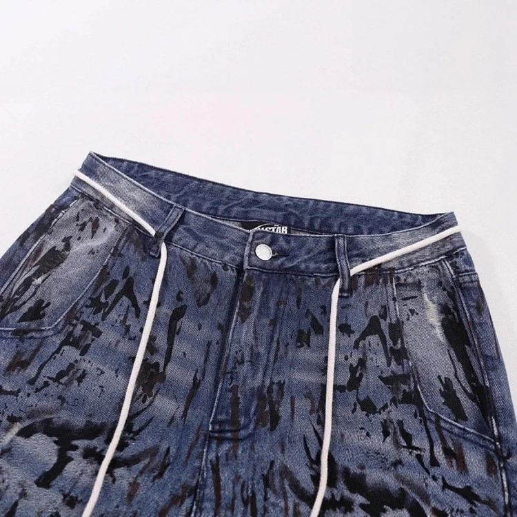 Hellstar Splatter Graffiti Monkey Washed Blue Casual Loose Straight Jeans-4946