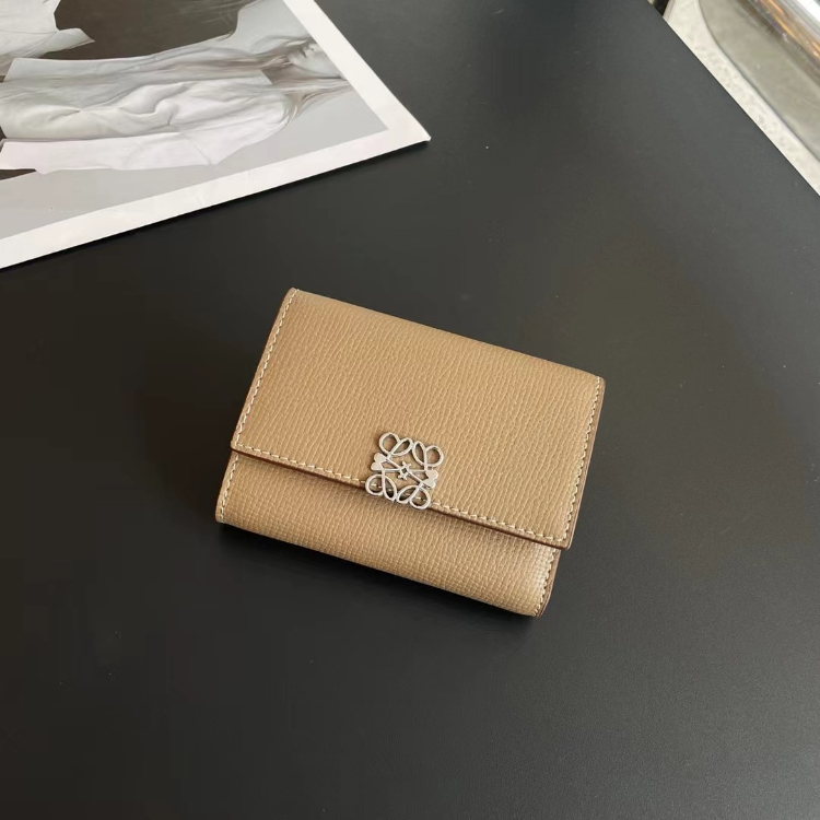 Loewe new tri-fold perforated floral pattern color-block wallet-5778