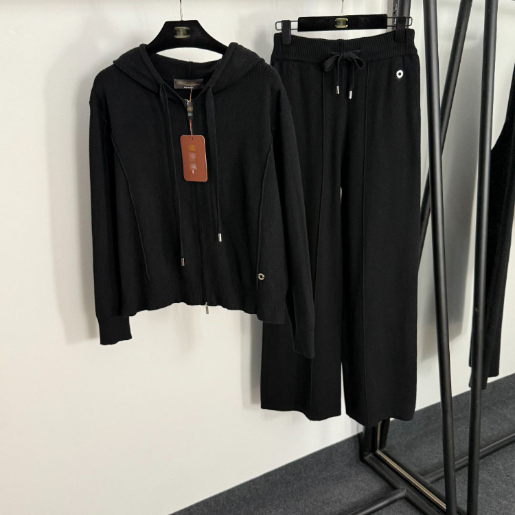 Loro Piana knitted sweater set with square neckline and decorative buttons-5404