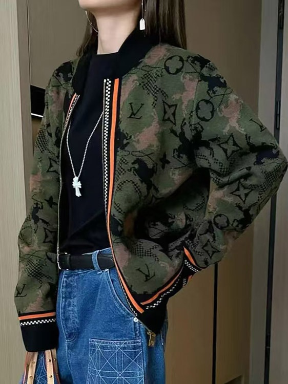 Louis Vuitton LV new jacquard wool bomber knit sweater camouflage jacket-5218