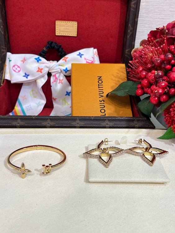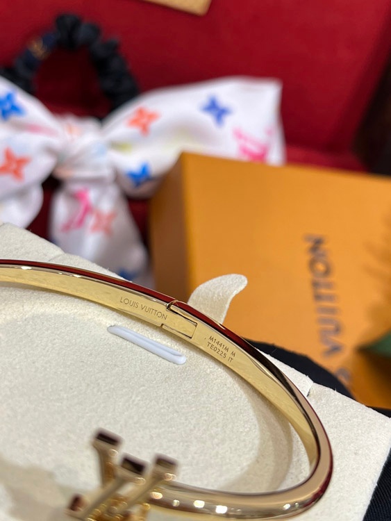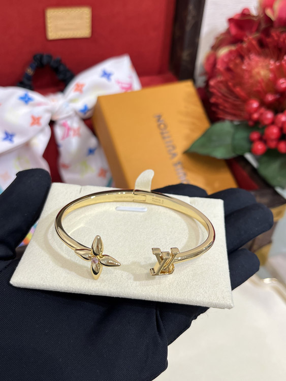 Louis Vuitton LV Rose Quartz Floral Letter Gold Open Bracelet-3720
