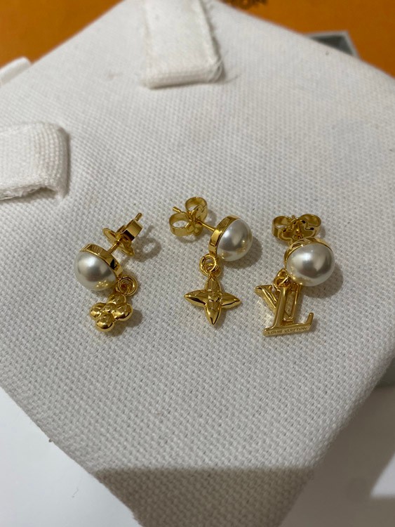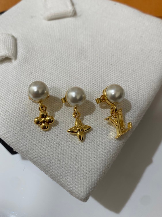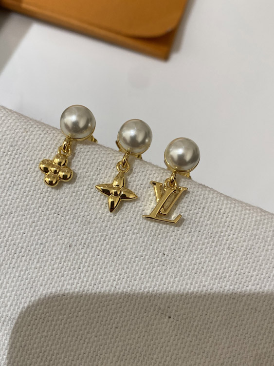 Louis Vuitton LV three-piece earrings with pearl letters-3608