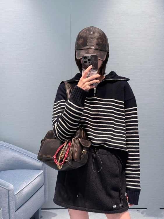 Miu Miu new collection set Embroidered logo fleece hooded zip-up jacket-5363