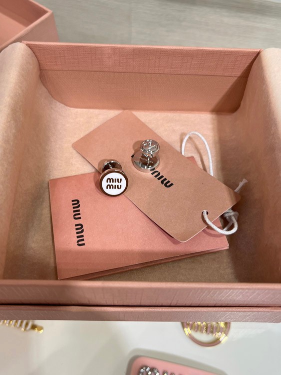 MIUMIU white enamel letter metal round button earrings-3892