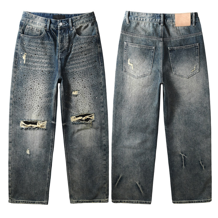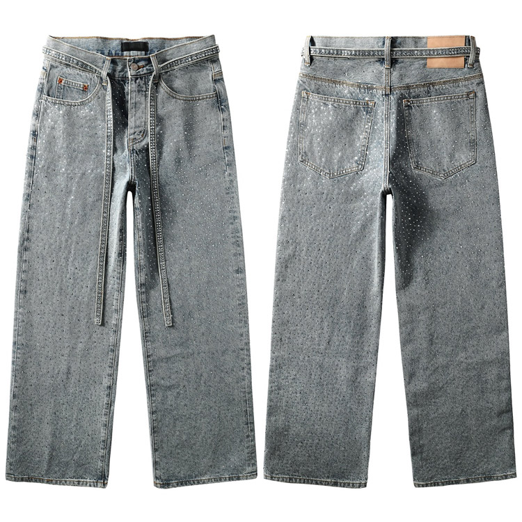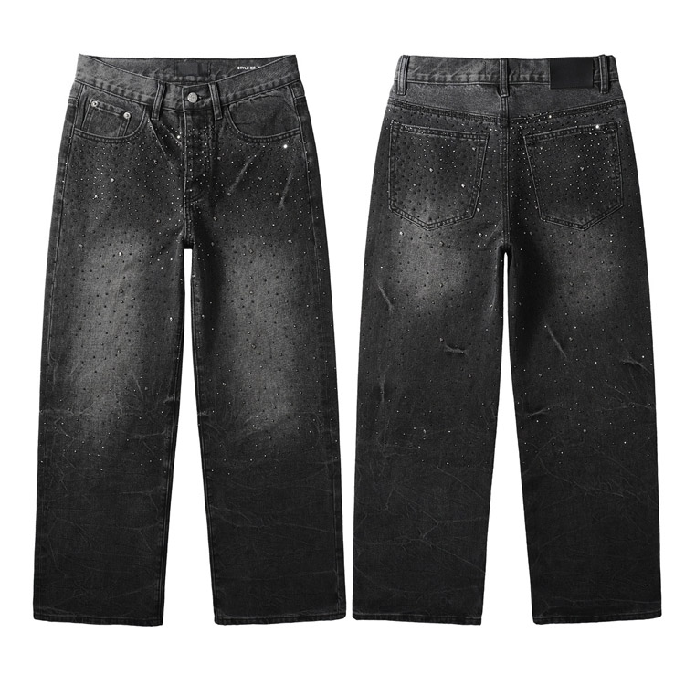 Purple Brand new diamond-studded slim-fit skinny jeans with wide legs-4247