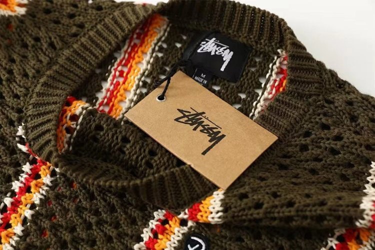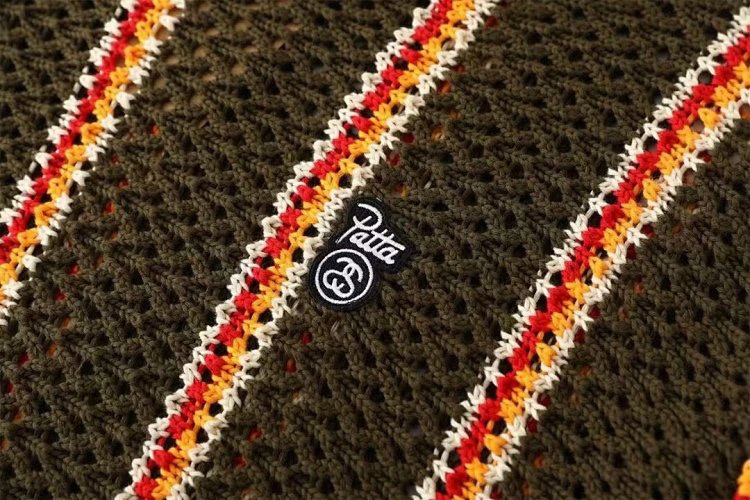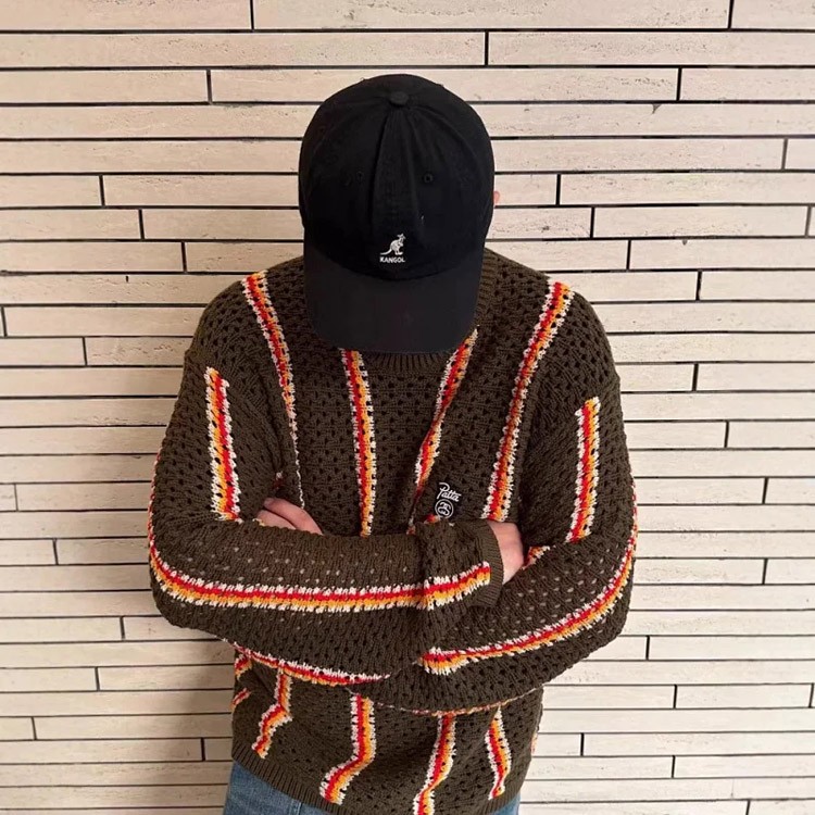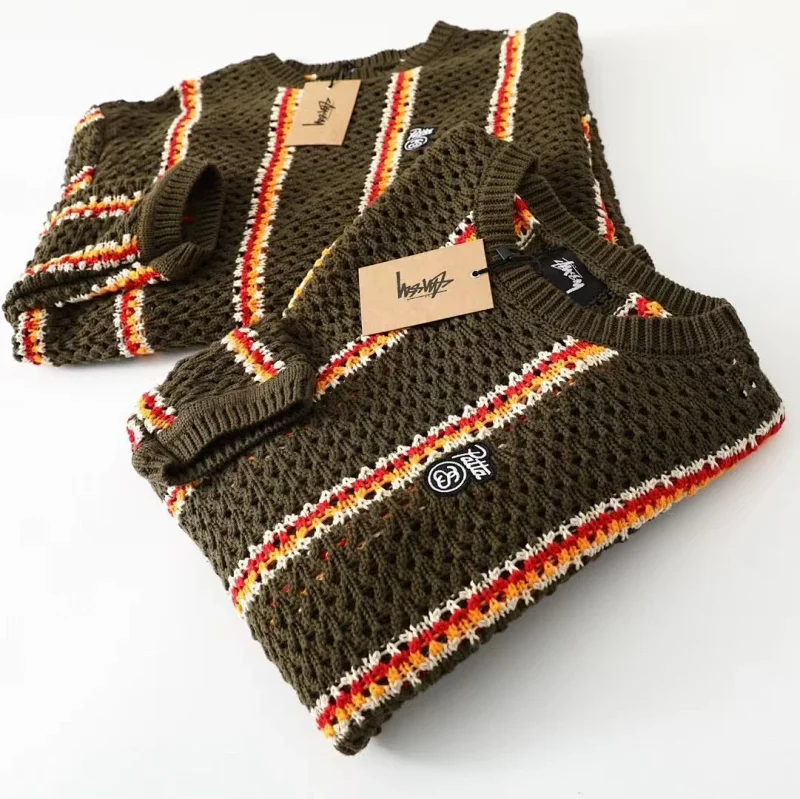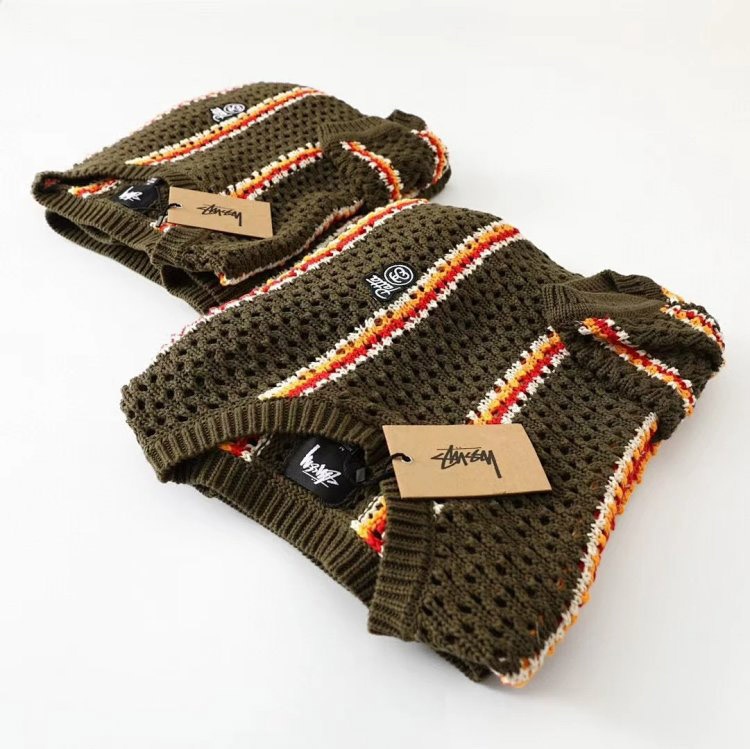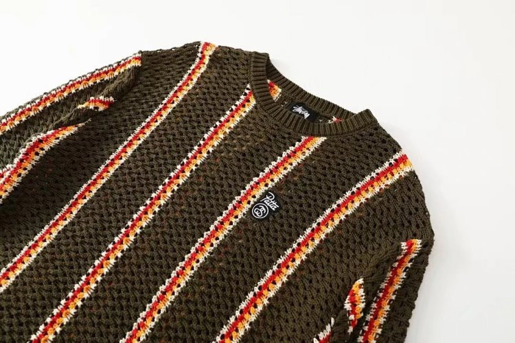 Stussy striped openwork knit crew neck sweater-5510
