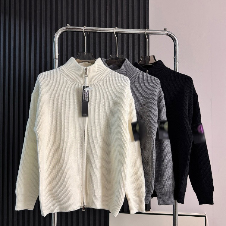 Stone Island loose-fitting knitted cardigan sweater with zipper closure-5233
