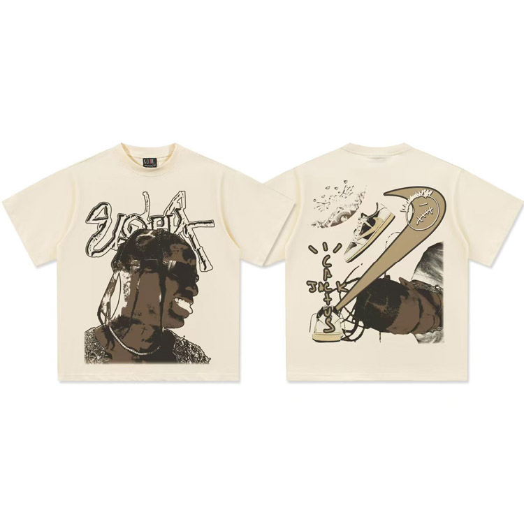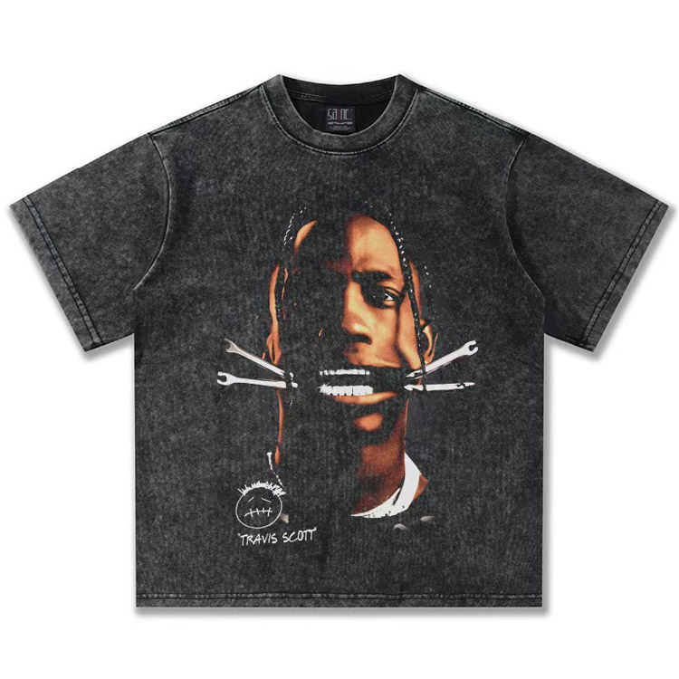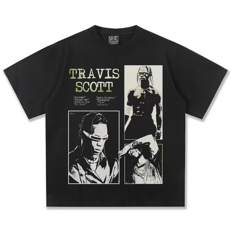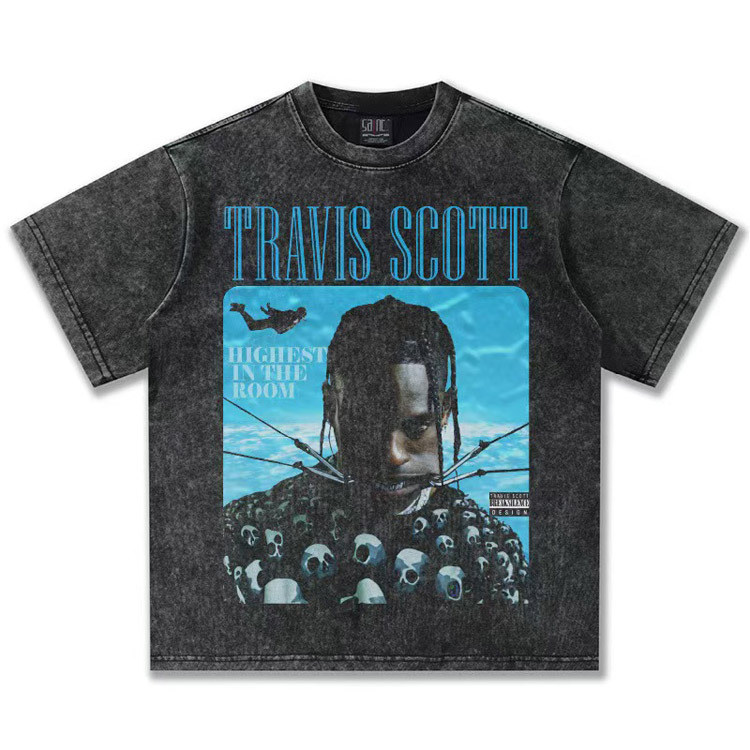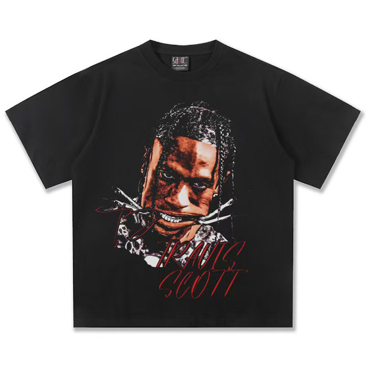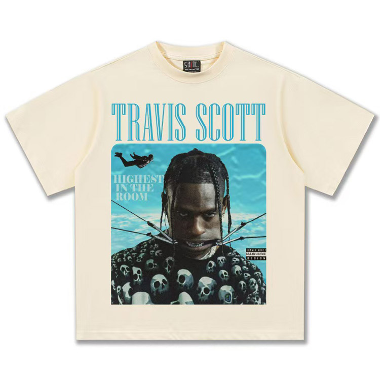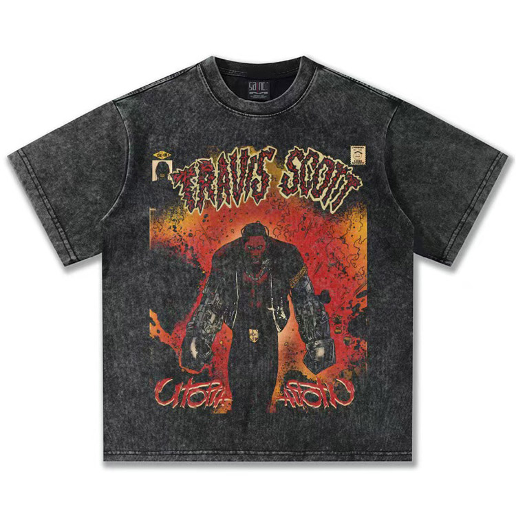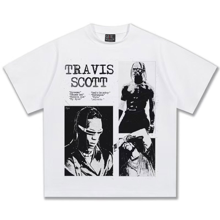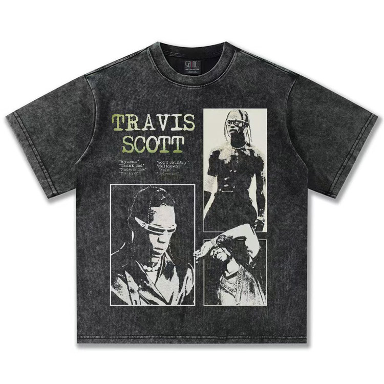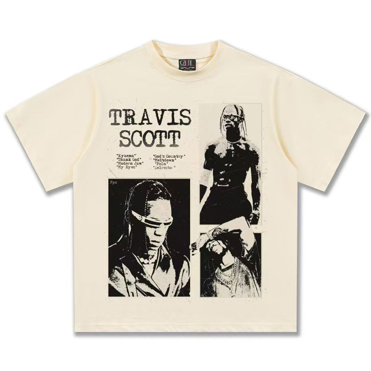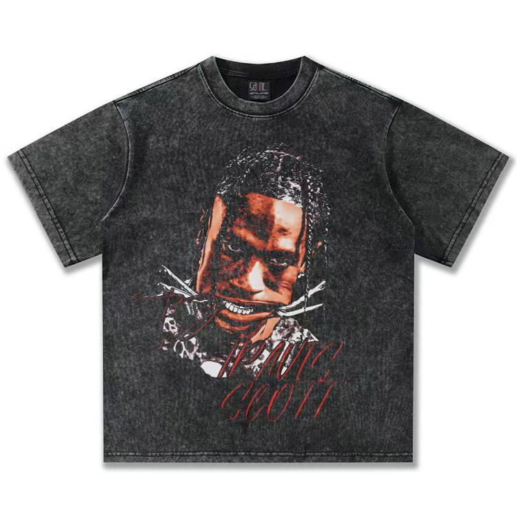 Home > Travis Scott Vintage Pure Cotton Double-Yarn Short-Sleeved T-shirt-5097