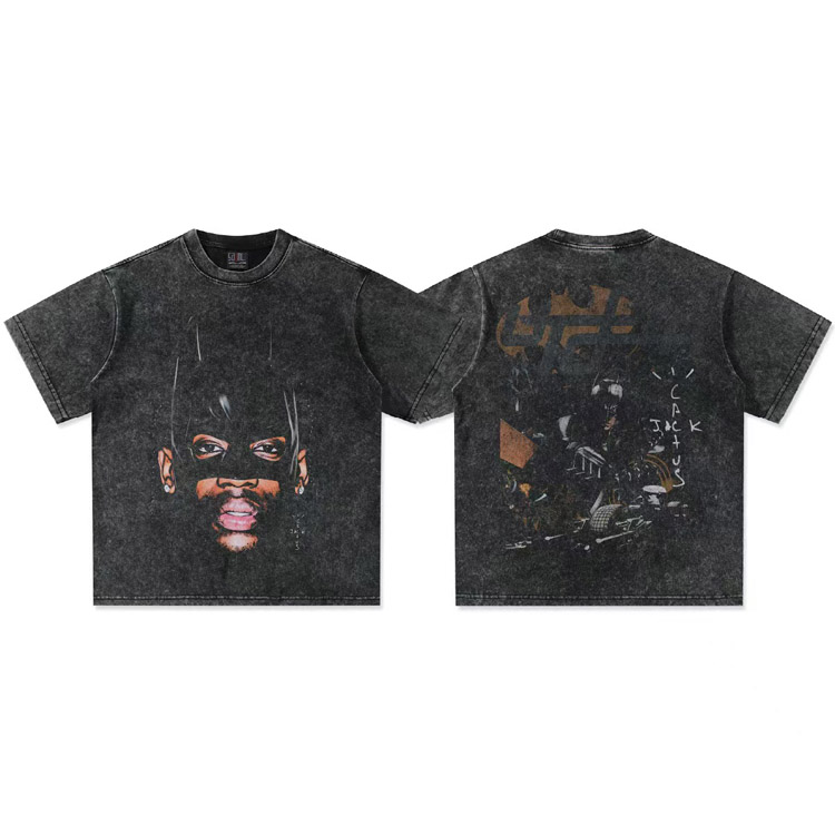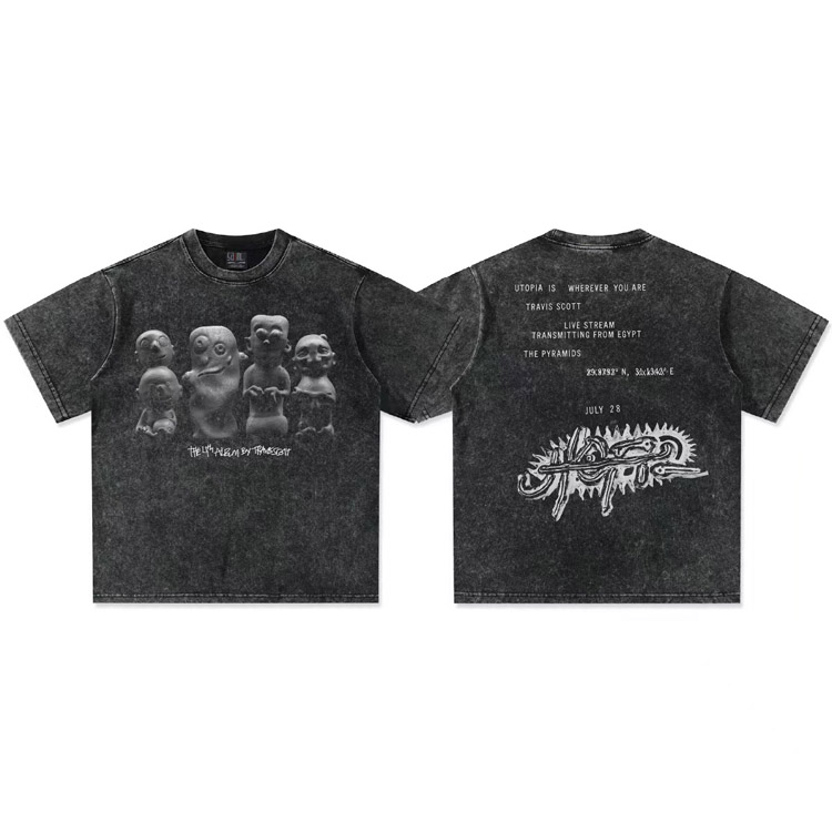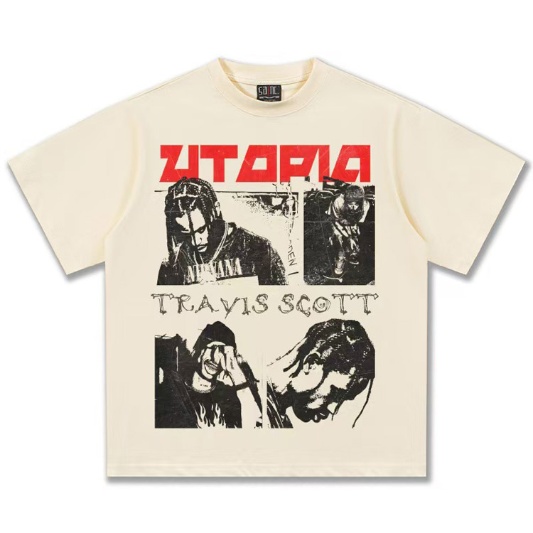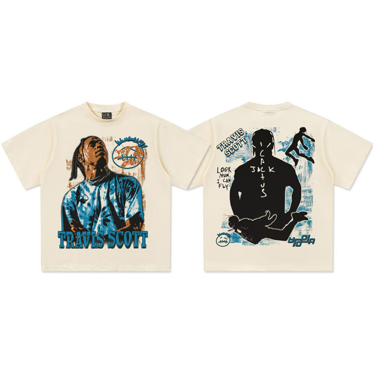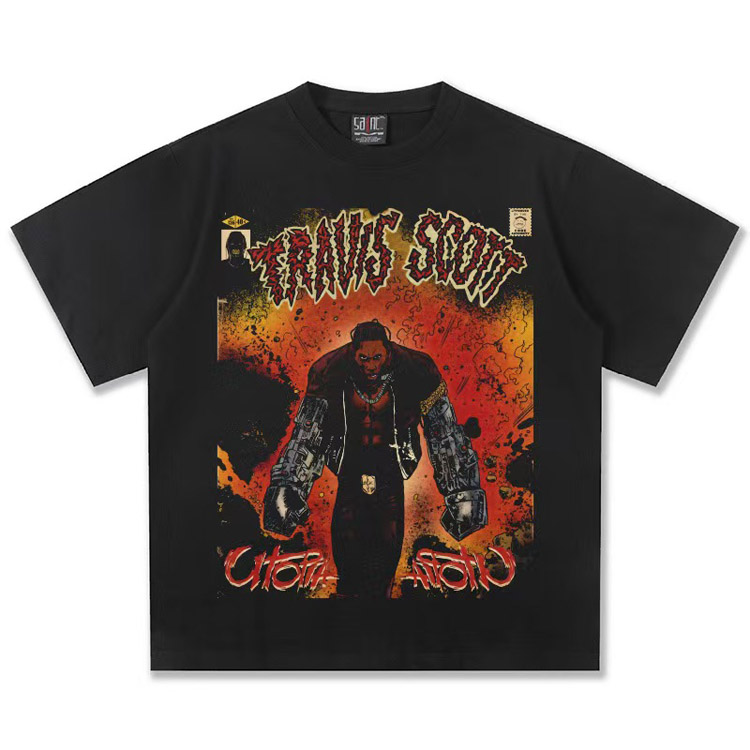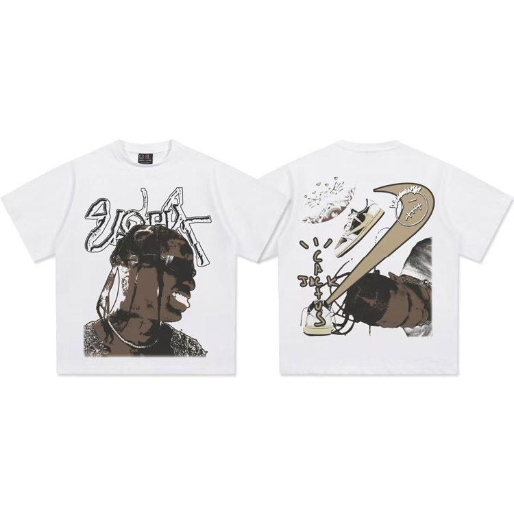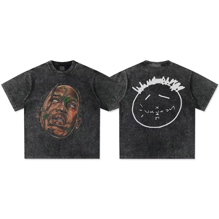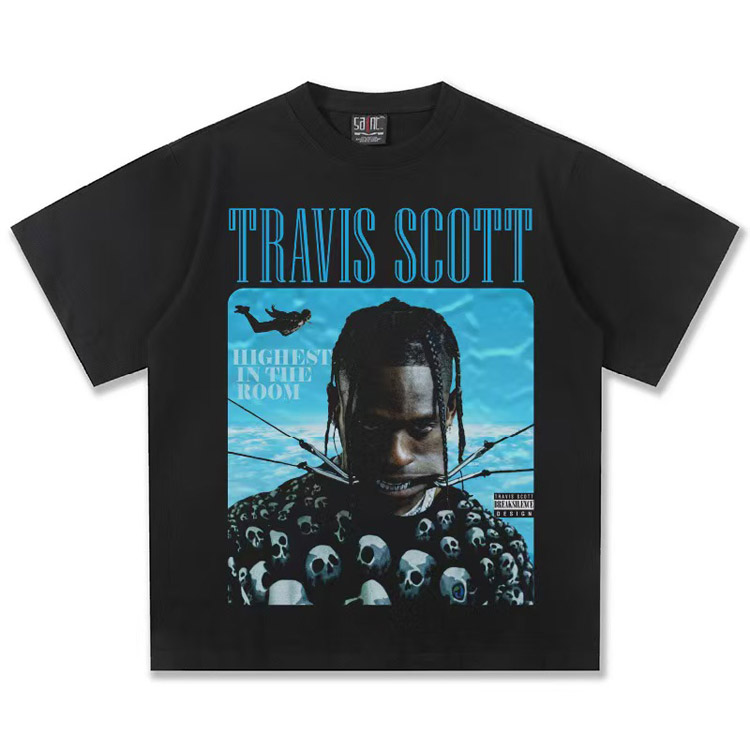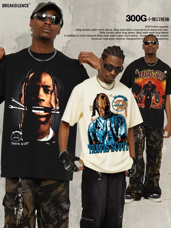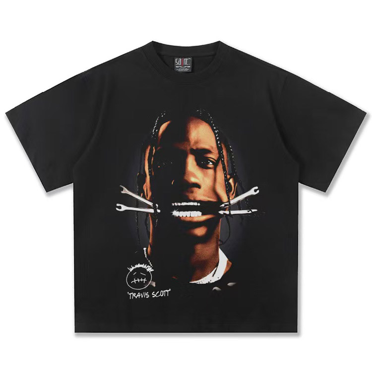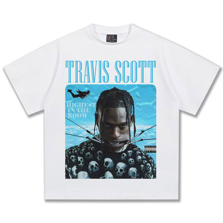 Home > Travis Scott Vintage Pure Cotton Double-Yarn Short-Sleeved T-shirt-5097