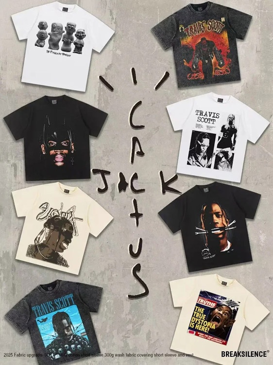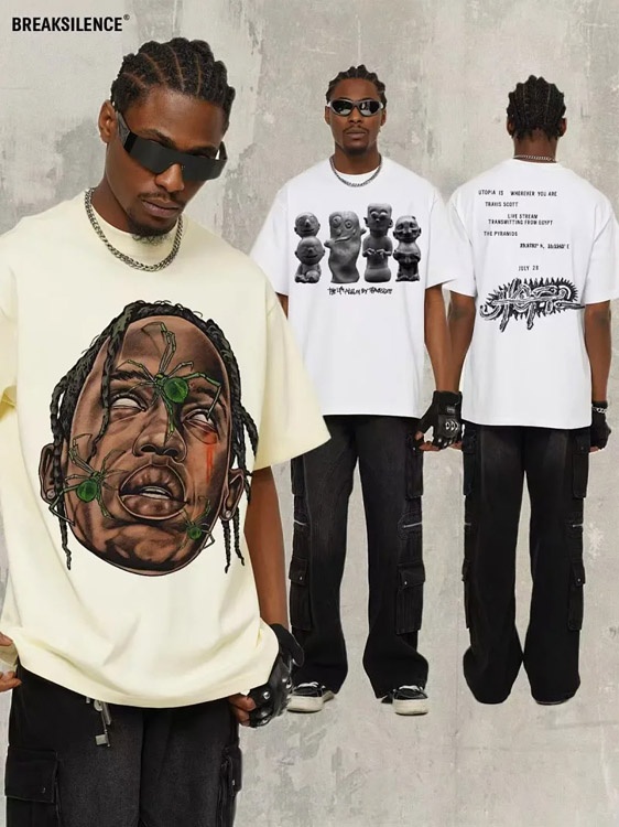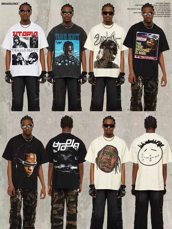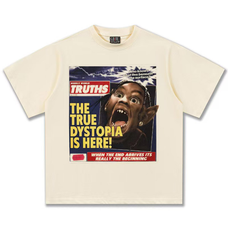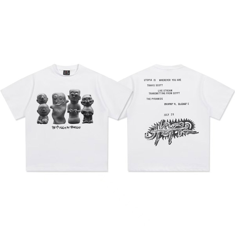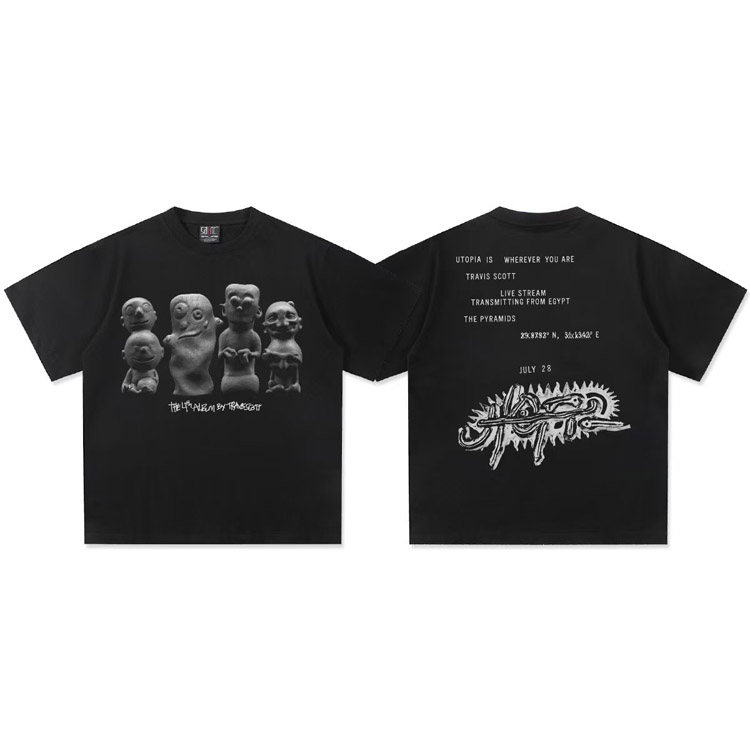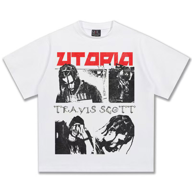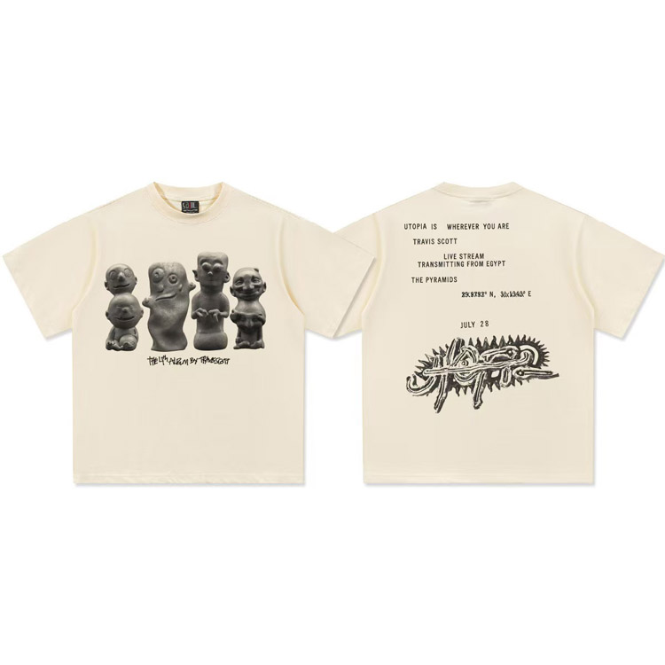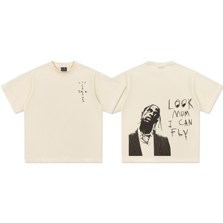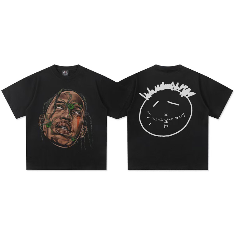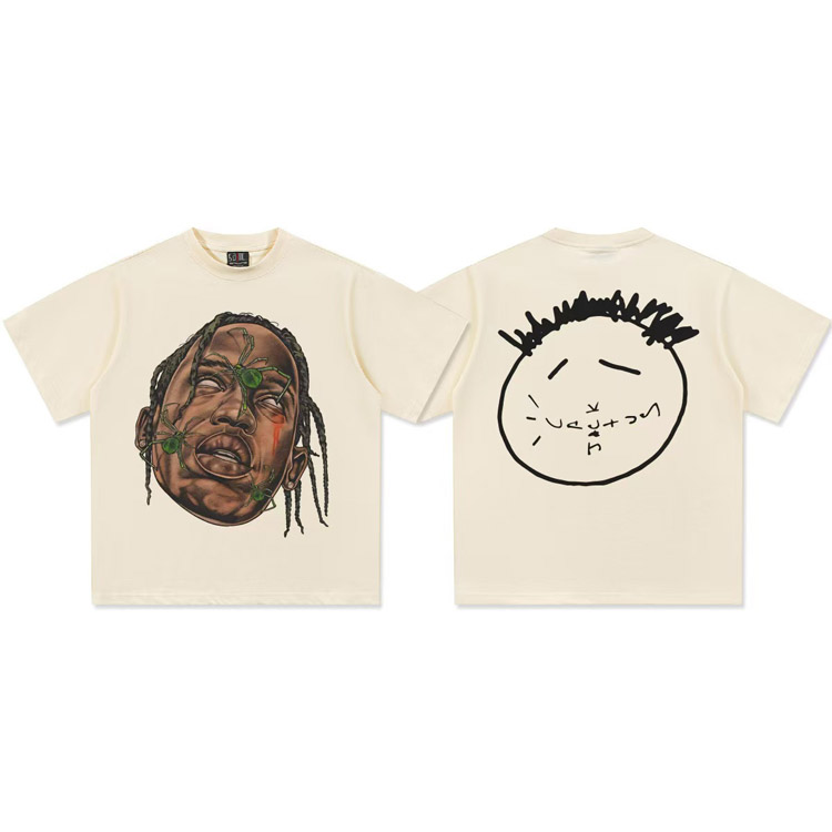 Home > Travis Scott Vintage Pure Cotton Double-Yarn Short-Sleeved T-shirt-5097