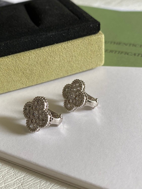 Van Cleef & Arpels full diamond four-leaf clover earrings-3958